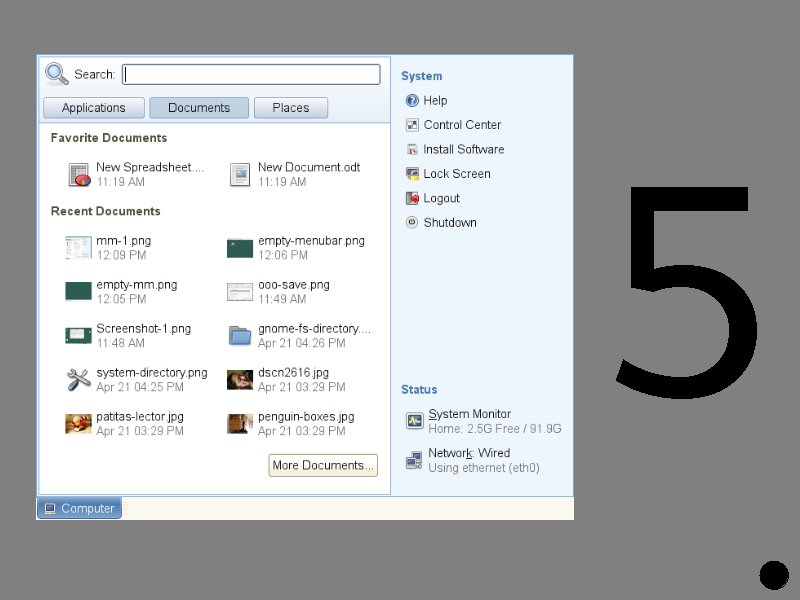 Fifth step: You only get shown very few files. There is no way to show more of them. If you click the hard-to-find “More Documents...” button, you'll get taken to ~/Documents, which of course doesn't have the files you were working on recently.