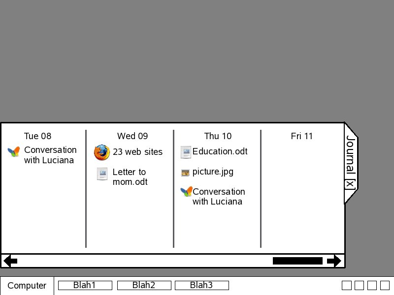 Let's borrow an idea from the real world: when you look at your desk, your most recent work is just there. Also, responsible people keep a log or journal of their work. So, let's build a journal for them automatically. For now this is the Recent Files infrastucture we have, but we can later extend it to be a real daily journal.
