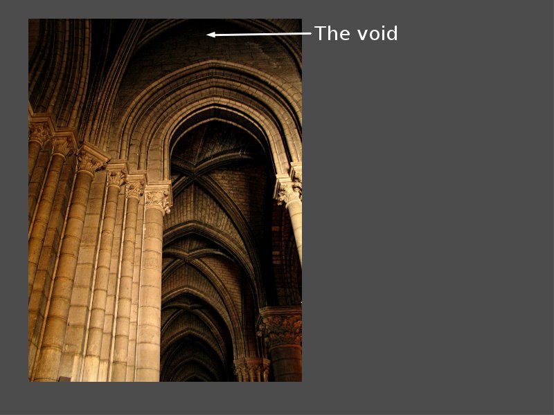 The void: that space of bricks between two arches doesn't need any decoration, it is “the void”; it can stand on its own without any extras.