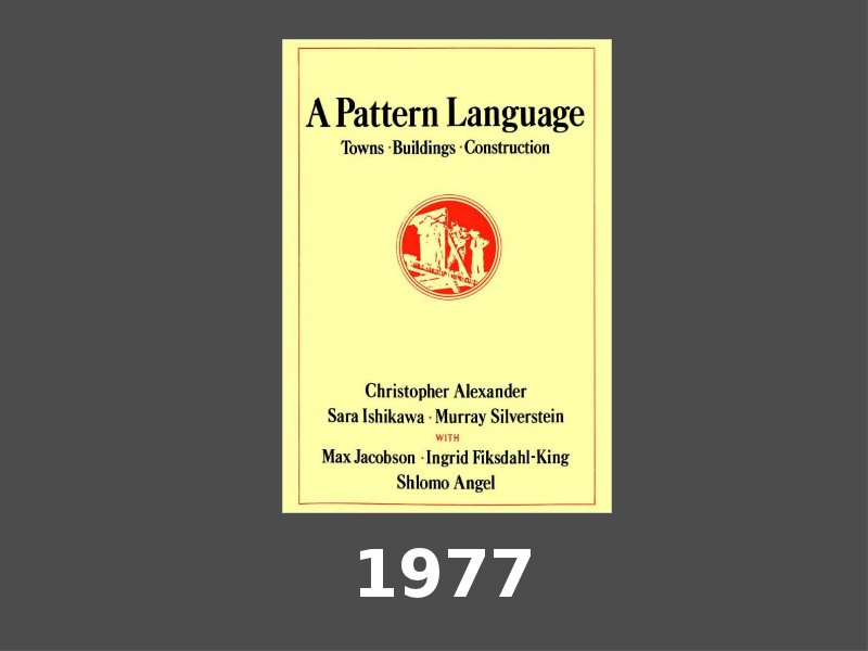 They started by writing three books; A Pattern Language is the most famous one. It is a list of architectural and construction patterns.