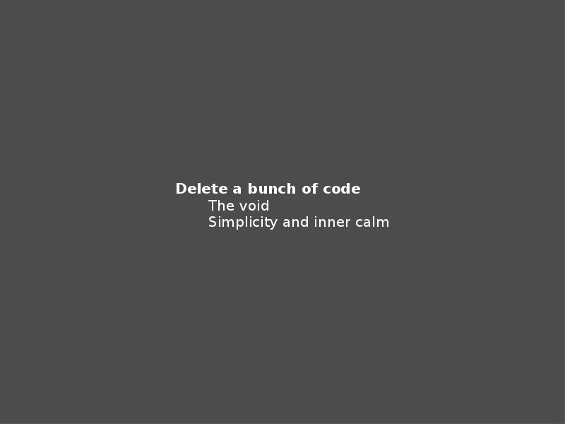 And the most important refactoring, removing a bunch of code. Doesn't this give you inner calm?